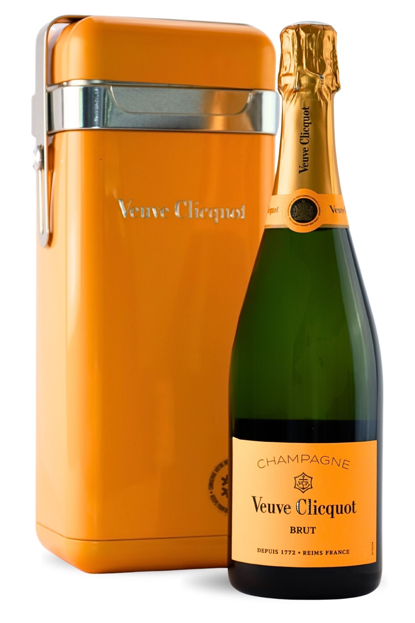 L’incontournable Champagne Veuve Clicquot Brut se présente ici dans son coffret exclusif The Cooler, une glacière design et réutilisable à l’élégance solaire.