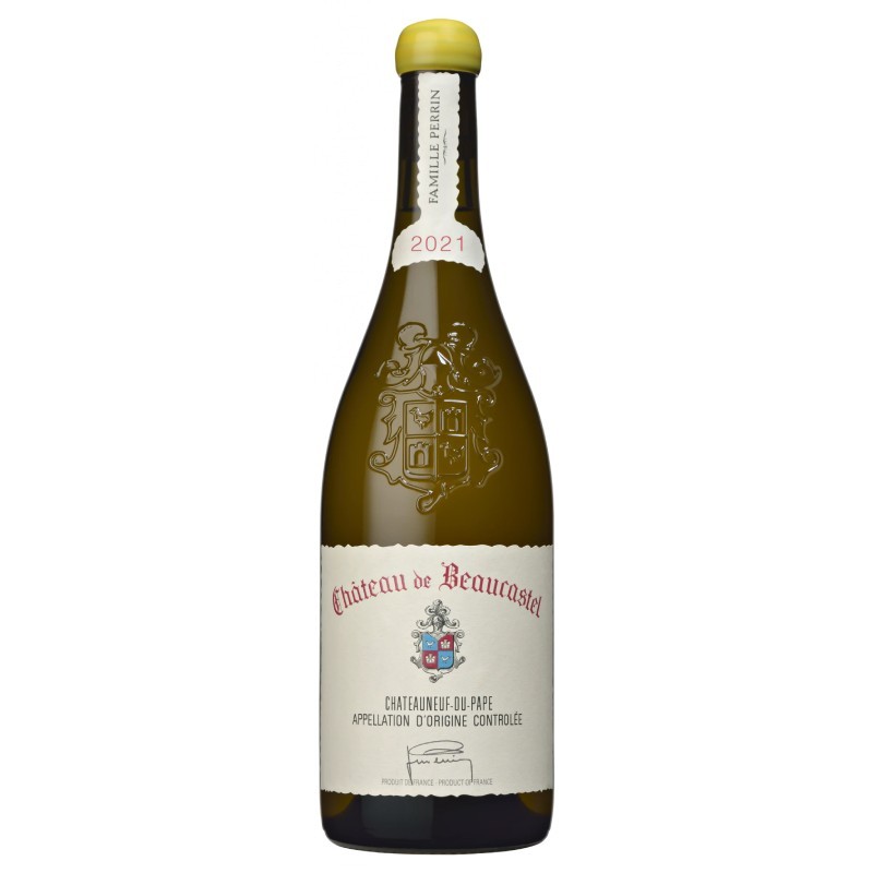 " Au nez, ce Châteauneuf-du-Pape blanc 2021 révèle des notes intense et complexe de fruits frais comme la pêche de vigne mêlés à des notes florales de chèvrefeuille et de verveine. Le Château de Beaucastel offre un vin blanc élégant avec une belle amertume dès l'attaque. Un vin blanc de la Vallée du Rhône souple et raffiné avec des arômes puissants."