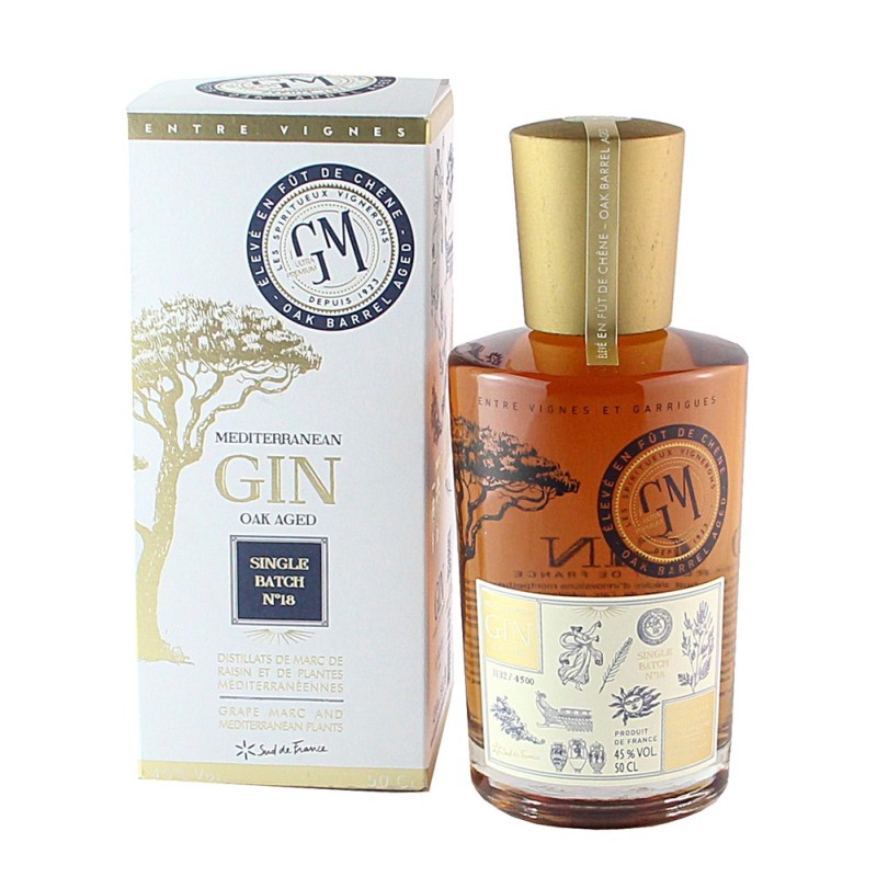 Inspirées par huit siècles d'innovations montpelliéraines en matière de distillation, nos distilleries vitivinicoles de l'arc méditerranéen continuent d'associer modernité et tradition avec le Gin GM dans sa version élevée. Associant l'alcool vinique à un délicat bouquet d'épices et de plantes locales (citron, lavande, amande), le gin GM est ensuite élevé 12 mois en demi-muids ayant servi pour l'élevage de vins doux naturels(fût de chêne), dévoilant ainsi des notes singulières d'agrumes, de fruits confits, de noix et de poivre noir.