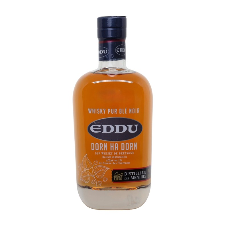 Le Whisky EDDU Dorn Ha Dorn est un pur blé noir breton issu d'une double maturation raffinée : d'abord en fûts ayant contenu du cognac, puis affiné en fûts de Pineau des Charentes rouge. Son nom, signifiant « main dans la main » en breton, évoque la collaboration entre le fondateur Guy Le Lay et l'expert charentais Robert Léauté, unissant tradition bretonne et savoir-faire charentais
