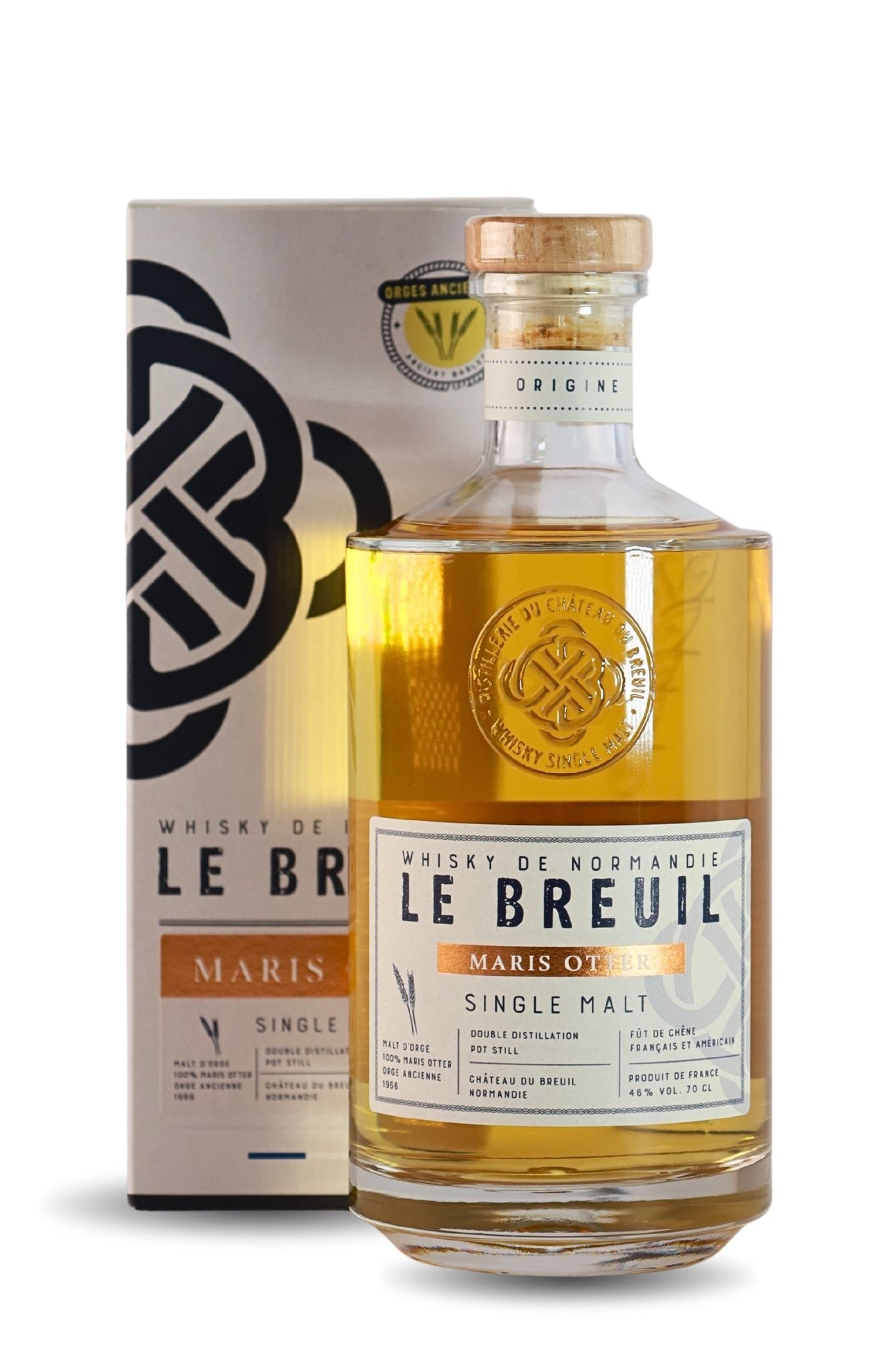 Le Single Malt Maris Otter de Château du Breuil est un whisky français d’exception élaboré à 100 % à partir de la variété d’orge ancienne Maris Otter. Vieilli en fûts de chêne français et américain, il dévoile un profil malté puissant, rythmé par des notes de sucre brun, cacao et fruits exotiques. Une cuvée rare, reflet d’un terroir normand et d’un savoir-faire artisanal.