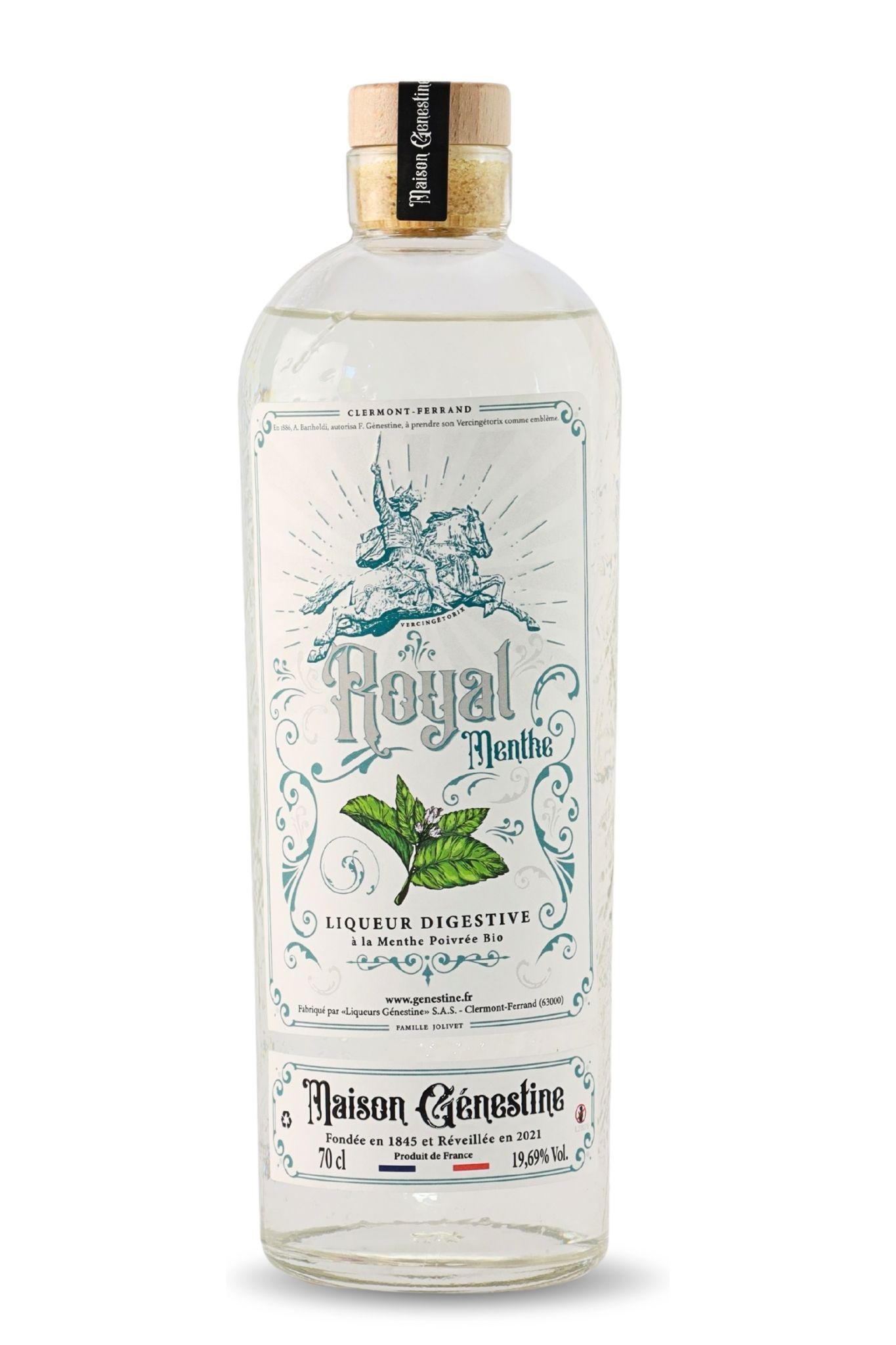 La liqueur Royal Menthe est l'héritière de la Cristal Menthe et perpétue une tradition de qualité. Elle est entièrement fabriquée à Clermont Ferrand avec des ingrédients 100% naturels et locaux : menthe poivrée bio, sucre français et eau pure d'Auvergne. La distillerie garantie une élaboration sans colorant, sans arômes artificiels et sans conservateur, pour un goût franc et une pureté aromatique.