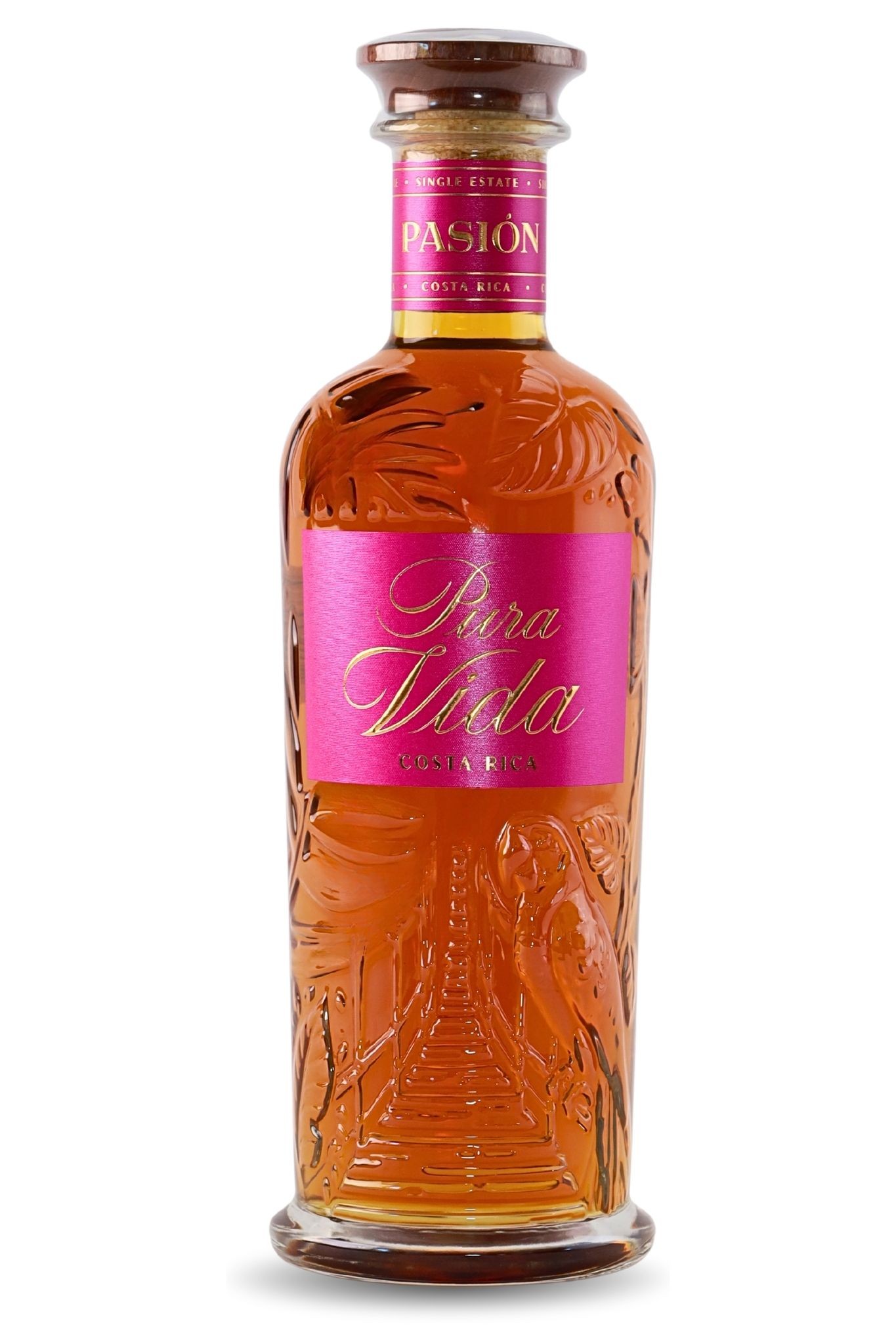 La cuvée Pura Vida Pasion est une célébration de la devise costaricaine "Pura Vida" ('Profite de la Vie"). Il allie l'exigence des rhums extra-añejos à l'exubérance des fruits tropicaux. L'infusion, réalisée en France, assure une qualité aromatique exceptionnelle, transformant un rhum déjà riche et structuré en une boisson fruité, idéale pour l'apéritif.