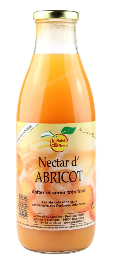 Elaboré avec des abricots du département catalan, ce nectar est rafraichissant et délicieux. Evidemment il s'agit d'un nectar (ajout d'eau), car un 100% jus serait tout simplement trop épais et donc imbuvable en l'état.