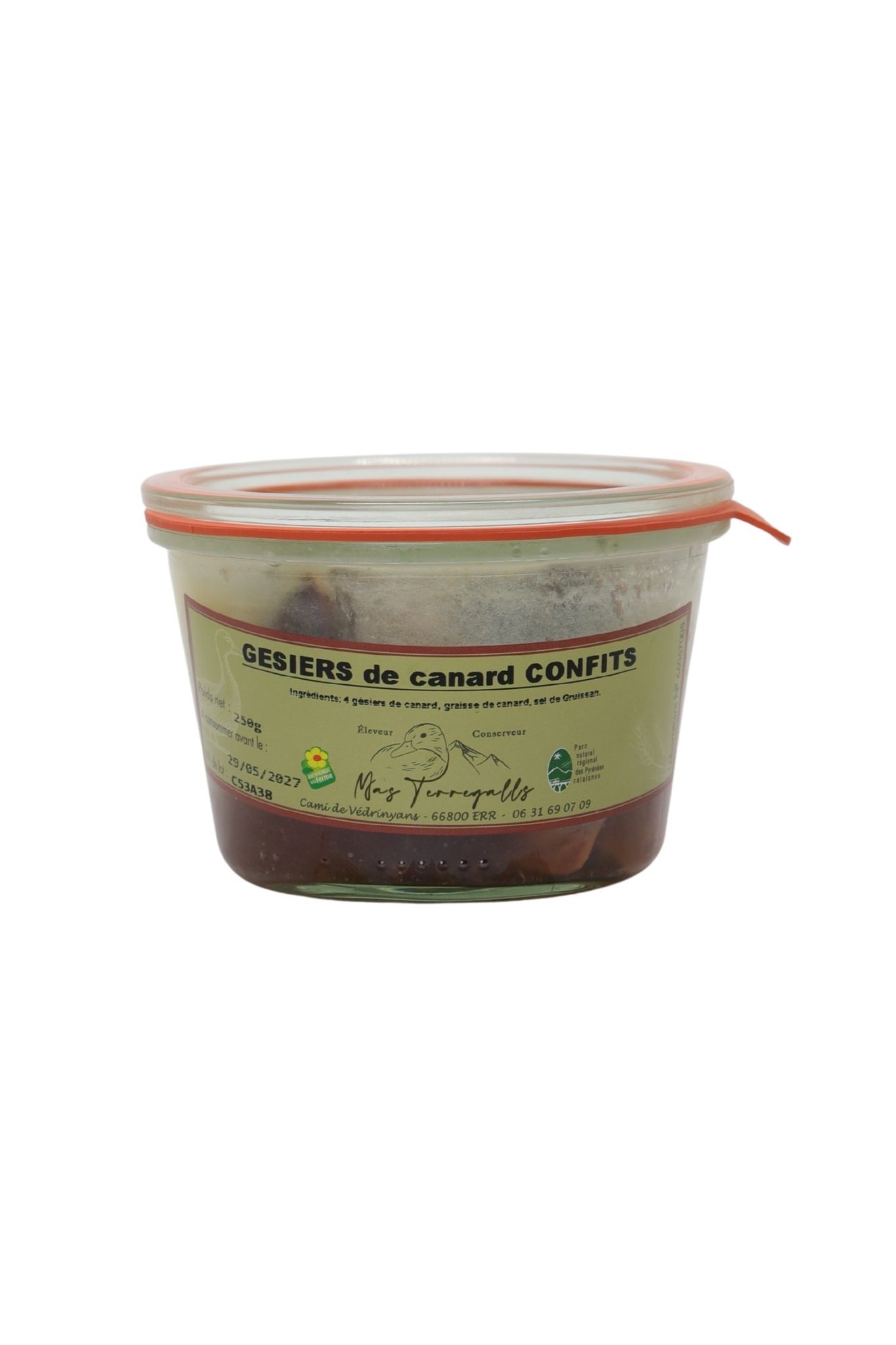 Les Gésiers de Canard Confits du Mas Terregalls sont préparés selon un savoir-faire traditionnel, garantissant une texture fondante et une saveur riche. Confits lentement dans leur graisse, ils révèlent un goût authentique et gourmand, idéal pour agrémenter vos salades, plats chauds ou assiettes gourmandes. Un produit artisanal qui met à l’honneur la qualité et l’origine locale des canards.